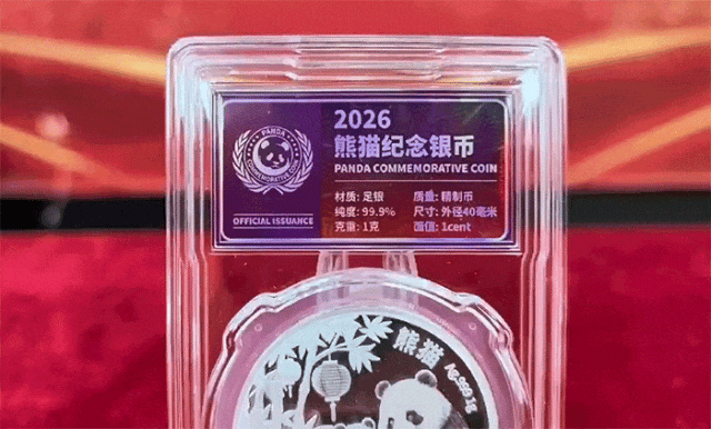 2026熊猫纪念银币以精制币造币工艺铸造,熊猫的毛发、眼神等细节栩栩如生,带来指尖可触的生动质感。