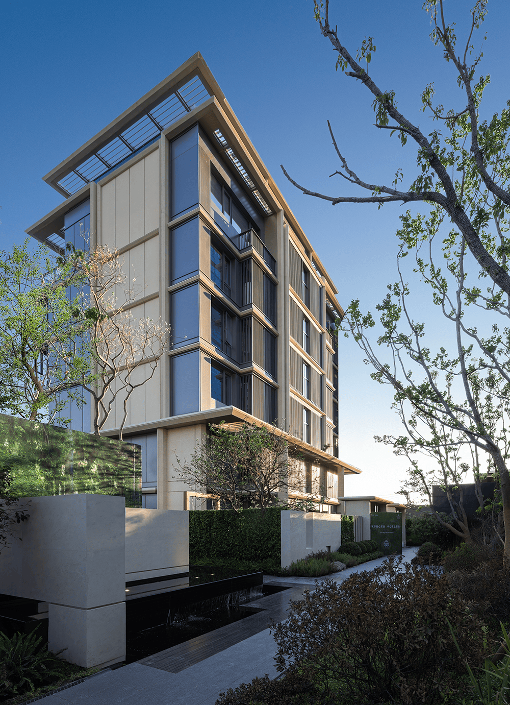 譬如,项目以超级底盘为概念,结合改善人群的日常生活需求,采用抬板立体规划,打破传统社区平面的无趣感,形成“浮光墅屿+垂直绿洲+流动山林