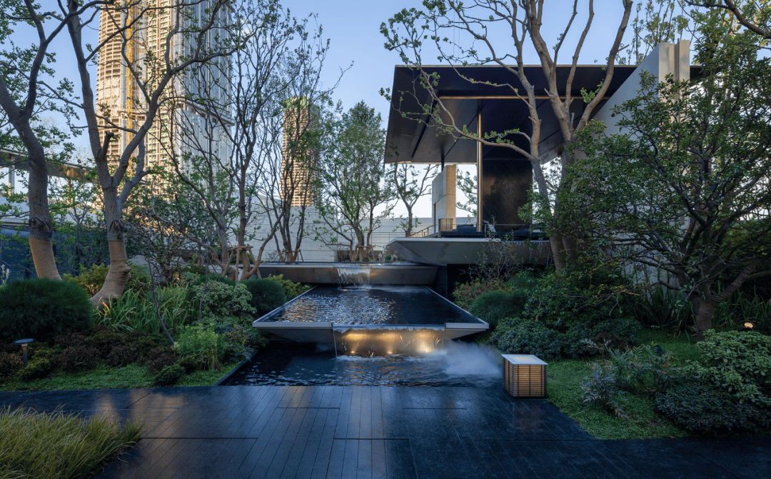 叠加悬挑式整石观景平台,整体犹如立体山水画卷,移步易景间,无论哪个角度都是隐贵生活的既视感。