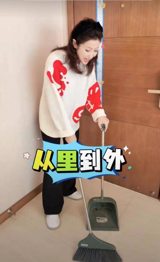 视频里春妮干活儿还挺麻利,一边扫地一边整理东西,还说自己特别喜欢收拾屋子。
