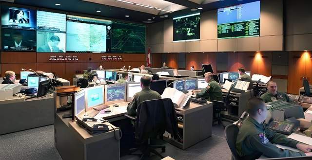 基地深处,作战中心墙壁是巨幅电子地图,显示全球导弹发射情况。一旦探测到袭击,指挥官只有几分钟决定是否启动反击。这里无论外界是白天黑夜,指挥中心始终灯火通明,人员三班倒,365天无休。