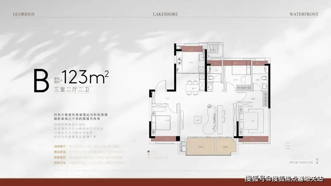 SLDK一体化,餐厅两侧均预留餐边柜位置,全卧及厨房均附赠飘窗,同时,项目拥有超大窗墙比,室内景观视野非常突出。