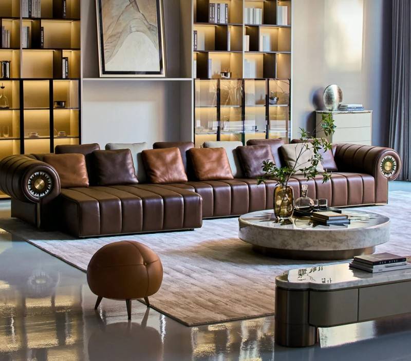 魅力大师的定制化服务,并非简单的尺寸调整,而是从牛皮、天然石、木材到五金的完整材质体系与全屋空间适配方案。从S级天然牛皮到L级全青皮,从南美胡桃木到北美黑胡桃木,从蓝色妖姬奢石到海洋水晶奢石——客户可以在品牌庞大的材质库中自由组合,让每一件家具都成为个人审美的专属投射。目前,品牌80%定制商品可实现全球交付,真正实现“源于品质,享受生活”的跨国界服务承诺。