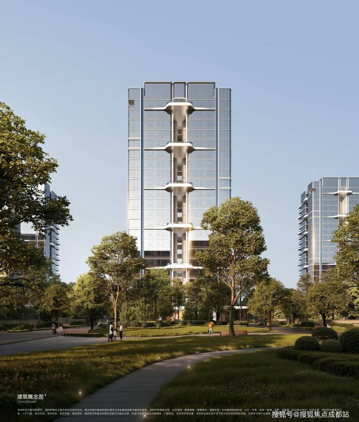 以“高空生态浮岛”开创高新首个三维生态曲线住宅,集曲线、巨幕、立体生态于一体,通过地上景观庭院、地下生态廊道与空中悬浮花园,打造西南首个“会呼吸的曲面立体生态矩阵”;更以“横向波浪”立面打破常规,采用双曲线漆玻璃幕墙 + 铝板 + 定制陶板及隐框设计,搭配无柱化结构与三面环幕 270° 观景,让建筑化作云端光影容器,既拥极致采光与视野,更彰显高阶格调,重构城市垂直绿洲,铸就时代奢居地标。